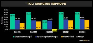 For the fiscal first quarter 2025, TCL recorded solid revenue growth of 9.3% YoY. The increase was primarily attributed by the Group to stronger sales volumes in the Guyana market, higher export activity from Trinidad and Tobago operations, and favourable pricing strategies in Jamaica. TCL’s revenue maintained its positive momentum for the past five (5) reporting periods.