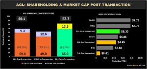 A closer look at the outstanding shares of both companies reveals that both PHL and AGL’s top 10 shareholders account for more than 75% of total ownership (AGL: 86.5%, PHL: 79.8%). Following the 100% acquisition of PHL, Agostini’s issued share capital would increase from 69.1M to 82.1M shares, reflecting the issuance of new shares to PHL shareholders. AGL’s top 10 shareholders post-transaction would increase from 59.8M shares to 68.9M shares, with top 10 ownership now accounting for 83.8% of total issued shares. Meanwhile, shares held by other (public and institutional) shareholders will increase from 9.3M to 13.3M, improving AGL’s relative public float and potentially enhancing trading activity over time.
