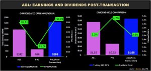 Based on FY2024 reported financials for both companies, on a consolidated basis: Total earnings would amount to TT$309M up from $242M for AGL alone and $66M for PHL. This translates to post-transaction earnings per share (EPS) of $3.76.