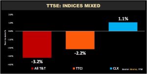 LJ Williams Limited ‘B’ (LJWB) led gains appreciating 20.0% during the quarter, while JMMB Group Limited (JMMBGL) advanced 14.0%, notwithstanding weaker financial results. Point Lisas Industrial Port Development Corporation Limited (PLD) advanced 6.7%. One Caribbean Media Limited (OCM) increased 5.3% and First Citizens Groups Financial Holdings Limited (FCGFH) improved 3.9% supported by modest revenue and earnings growth.