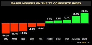 For Q12025, major decliners included Guardian Media Limited (GML, ↓ 20.0%), Ansa McAL Limited (AMCL, ↓ 16.4%), Trinidad and Tobago NGL (NGL, ↓ 15.5%), Scotiabank Trinidad and Tobago Limited (SBTT, ↓ 7.4%) and Trinidad Cement Limited (NGL, ↓ 6.0%).