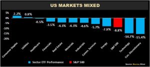 The benchmark index for U.S. equity markets, the S&P 500, declined by 8.8% year-to-date. Both the Consumer Discretionary and Technology sectors posted double-digit losses, contributing significantly to the broader market downturn.