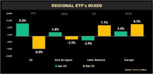 As at Friday April 11th 2025, Asian markets are currently down 2.8% YTD while US markets declined 8.9%. Europe and Latin America yielded positive results, up 8.5% and 7.7% respectively, YTD.