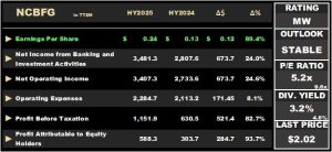NCB Financial Group Limited (NCBFG) generated an Earnings Per Share (EPS) of TT$0.24 for the six months ended 31st March 2025 (HY2025), advancing 89.4% from TT$0.13 in the prior comparable period (HY2024).