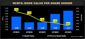 NCBFG’s Book Value Per Share (BVPS) rose from $2.99 in HY2024 to $3.11 in HY2025, driven by growth in retained earnings. Growth in BVPS, combined with a weakening in price, has resulted in a relatively more attractive price-to-book (P/B) ratio of 0.7x, below its five-year average of 1.7x.