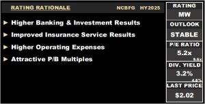 Excluding the one-off gain on sale of its subsidiary, the Group’s improvement in adjusted net operating income would have been more than offset by increases in operating expenses. Notwithstanding this, the Group’s relative valuation from a price-to-book (P/B) multiple perspective appears to be the most attractive of its publicly-listed banking sector peers. On this basis, Bourse maintains a MARKETWEIGHT rating on NCBFG.