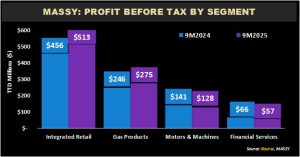 MASSY’s 13.2% PBT growth in 9M2025 was primarily supported by its major segment, Integrated Retail.