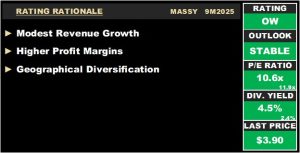 Despite shifting market conditions, MASSY continues to push forward with its strategy, driving efficiency across its businesses, pursuing disciplined acquisitions, and ensuring shareholders benefit through consistent dividend payouts. On the basis of continued revenue growth, resilient profit margins and continued geographical diversification, Bourse maintains an OVERWEIGHT rating on MASSY.