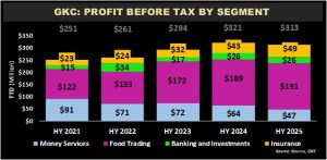 GKC’s Profit Before Tax (PBT) fell 2.7% to TT$313M before adjustments from the prior comparable period.