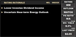 While the near-term energy industry outlook currently remains relatively subdued, over the medium-to-long term, several planned projects are expected to boost the energy sector. At a recent investor meeting, the Company indicated that it is evaluating all options to deliver increase value to shareholders, including but not limited to expanding its investee portfolio through new investments. On the basis of a muted energy industry outlook but tempered by relatively attractive valuation multiples, Bourse maintains its MARKETWEIGHT rating on NEL.