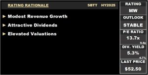 SBTT’s steady dividend payments continue to present a compelling case for income-oriented investors, even as other banking sector stocks offer comparable and/or superior dividend yields. On the basis of improved performance and consistent dividend payments, tempered by elevated sector valuations, Bourse maintains a MARKETWEIGHT rating on SBTT.